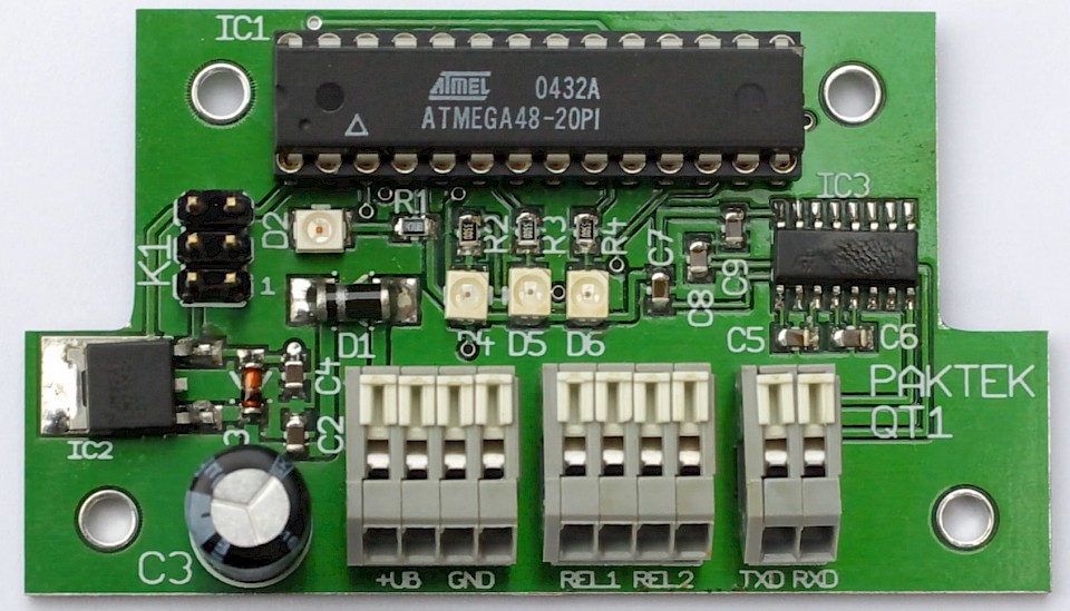 Im nächsten Schritt wird die Software (optional mit dem embedded Realtime Betriebssystem) auf die kundenspezifische Hardware übertragen, hier ein Board mit Atmel ATMEGA48.