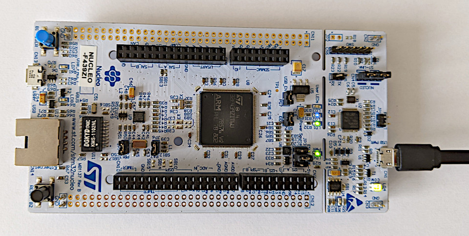 Die Software-Entwicklung startet auf einem embedded Evaluation Board parallel zur Hardware-Entwicklung, hier für STM32F439. Schnittstellen-Tests und erste Funktions-Tests können somit früh stattfinden.